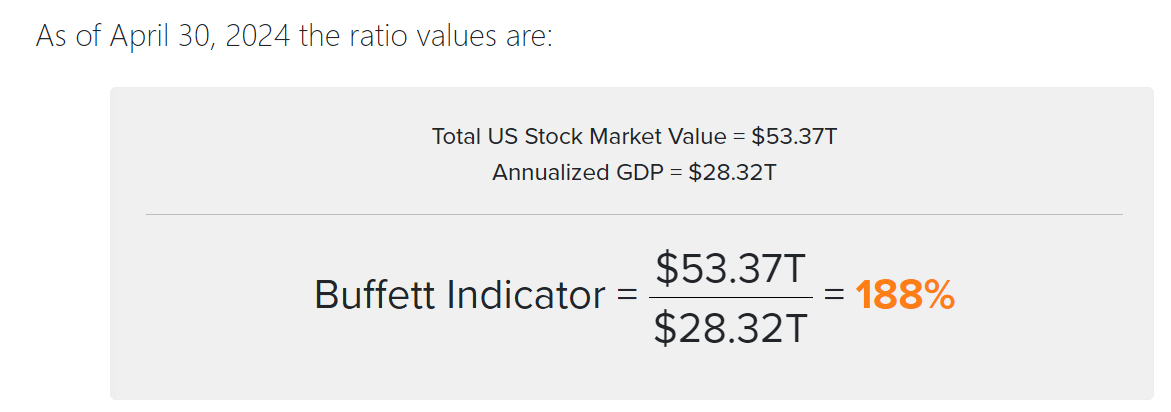 The Buffett Indicator is a simple ratio where the total market value of the US stock market is divided by annualized GDP. Using the most recent data, this ratio comes to 188%, which is the second-highest level recorded, just slightly lower than the post pandemic rally. While the ratio is historically high, those who track this model use an exponential regression line to employ the historical trend, and believe that over the long term, the ratio should naturally rise due to “new technology creating more efficient returns from labor and capital.”
