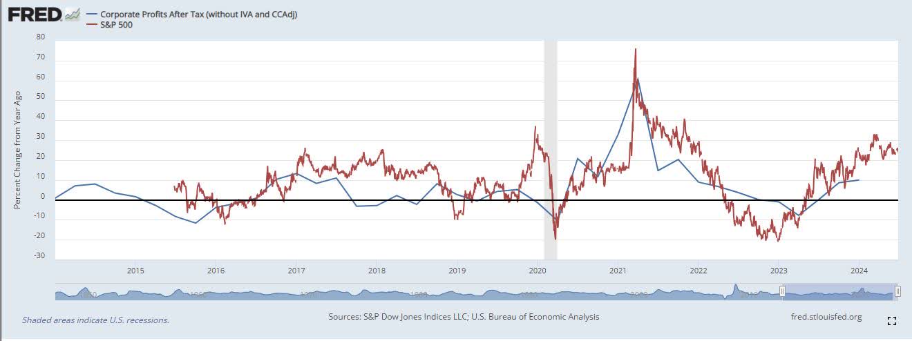 S&P Dow Jones Indices LLC, S&P 500 [SP500], retrieved from FRED, Federal Reserve Bank of St. Louis; https://fred.stlouisfed.org/series/SP500, June 27, 2024.