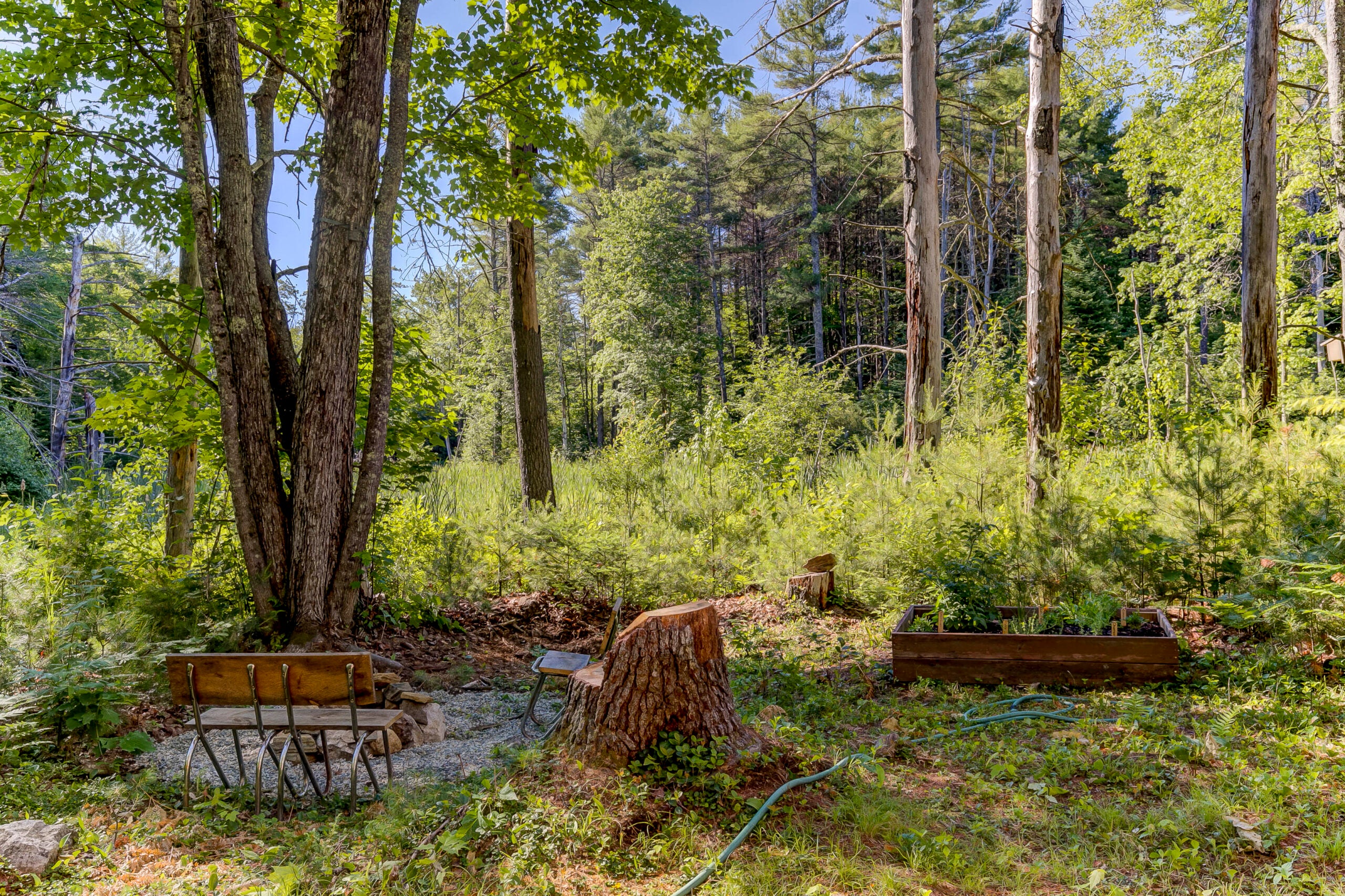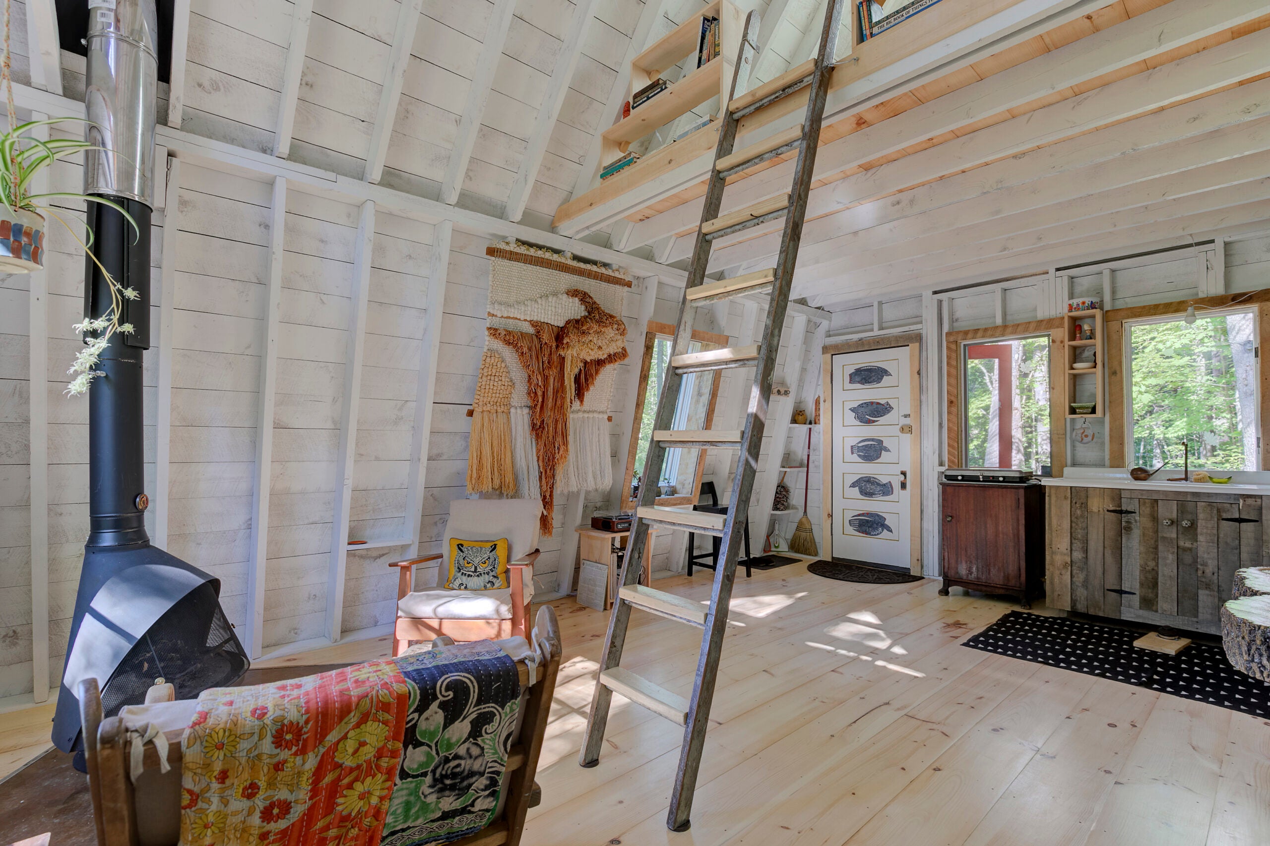 Known as Little Pine Cottage, 184 Libby Road in Newfield is a one-bedroom home worthy of endless Instagram posts. Tucked away inside the forest, it welcomes guests on an elevated front porch, perfect for sitting back with a book and your morning coffee.