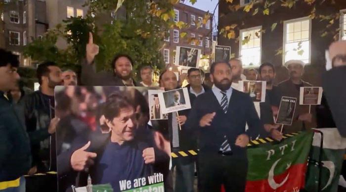 The PTI supporters, led by former prime minister Imran Khan’s ex-special assistant Sayed Zulfi Bukhari and former member of National Assembly (MNA) Maleeka Bokhari, staged the demonstration to condemn The Honourable Society of the Middle Temple for elevating ex-CJP Isa as a Callee and hosting him at the dinner.