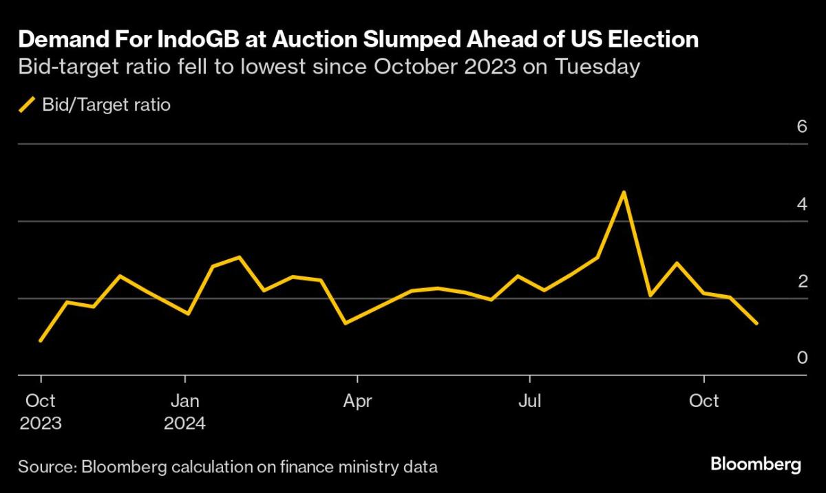 (Bloomberg) — Foreign investors are piling into Indonesian sovereign bonds, drawn by the new president’s signals for fiscal discipline and their appetite for emerging market alternatives given US election-related volatility.