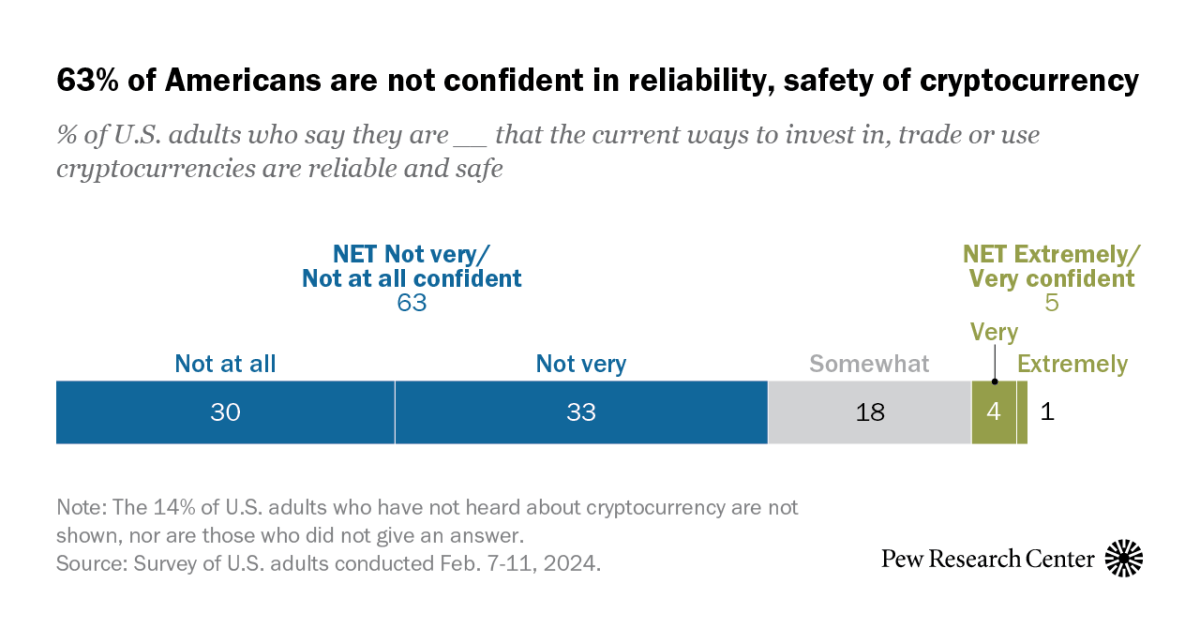 On cryptocurrency, 63% of US adults not confident it’s safe, reliable