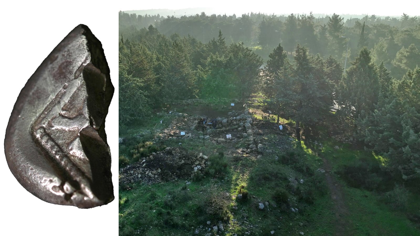The coin, from the sixth to fifth centuries BCE, was found alongside a building from the First Temple period from the seventh century BCE, as well as even earlier evidence for commerce in the form of a shekel weight. The weight would have been used for weighing metals, spices and other commodities.