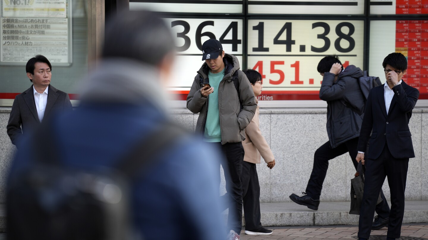 HONG KONG (AP) — Shares were mixed in Asian markets Monday after Wall Street returned to record heights Friday, while Hong Kong’s benchmark dropped over 2%, hovering near a 15-month low. European markets opened higher.