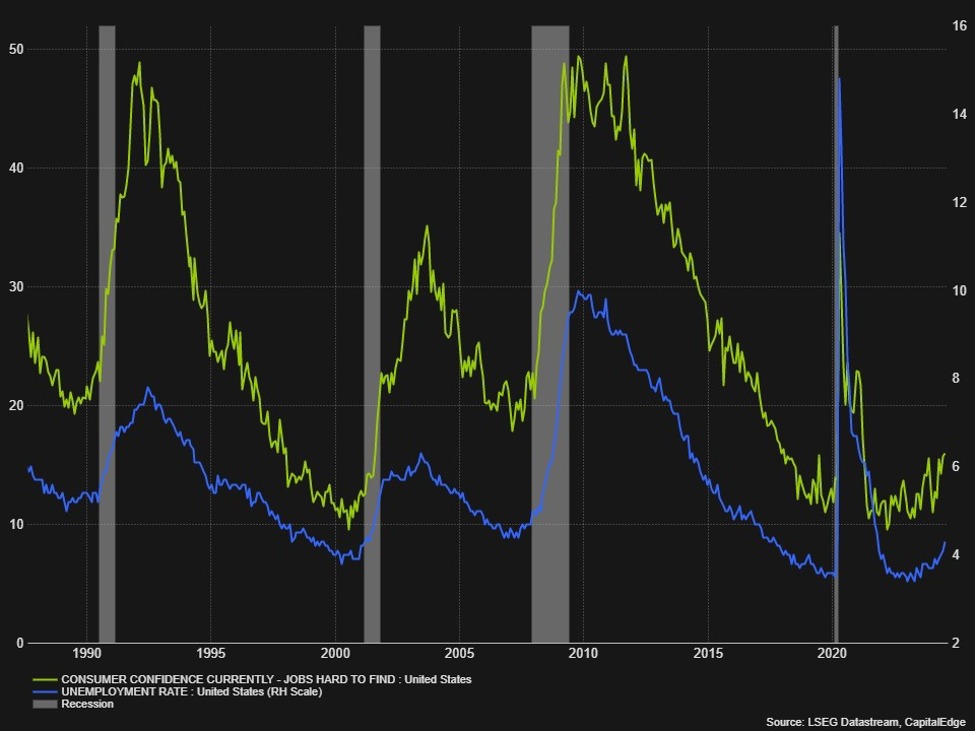 1. Jobs hard to find (overlaying this with the unemployment rate should explain why it’s useful and why it would matter going into next week’s jobs data).
