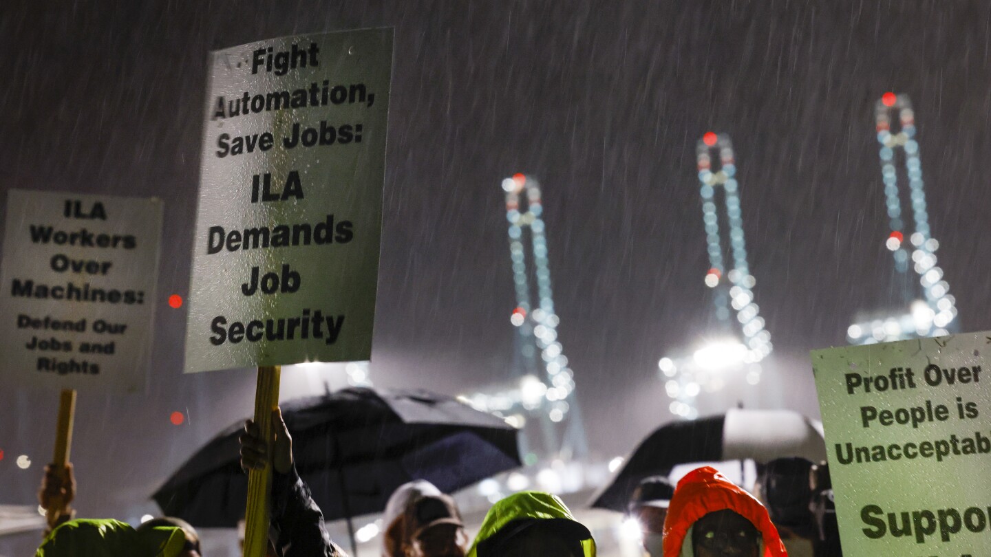 PHILADELPHIA (AP) — Dockworkers at ports from Maine to Texas began walking picket lines early Tuesday in a strike over wages and automation that could reignite inflation and cause shortages of goods if it goes on more than a few weeks.