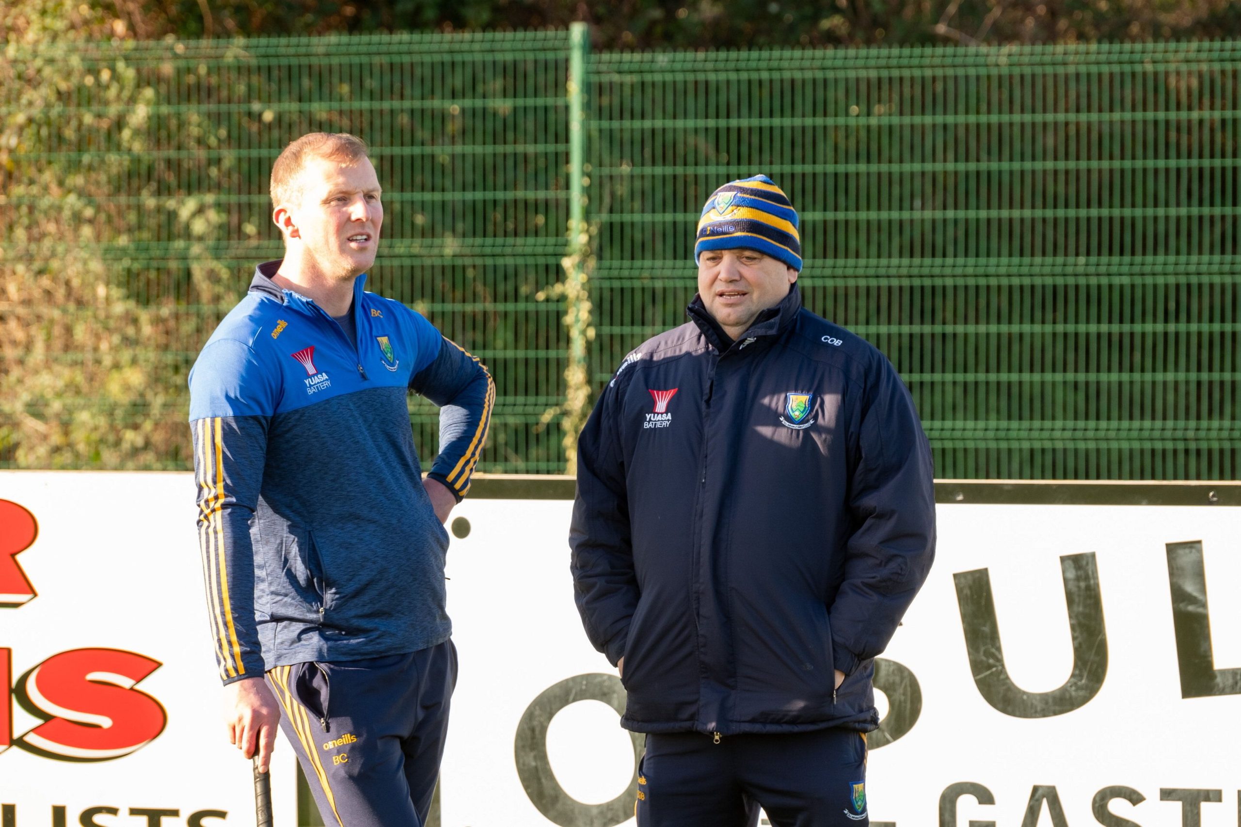 Wicklow hurling selector Billy Cuddihy and manager Casey O’Brien before the match against Kildare in the Kehoe Cup.